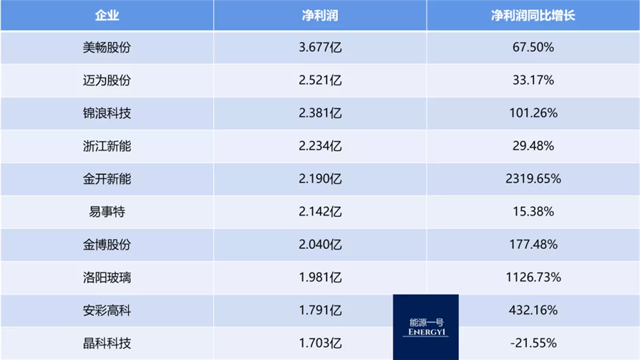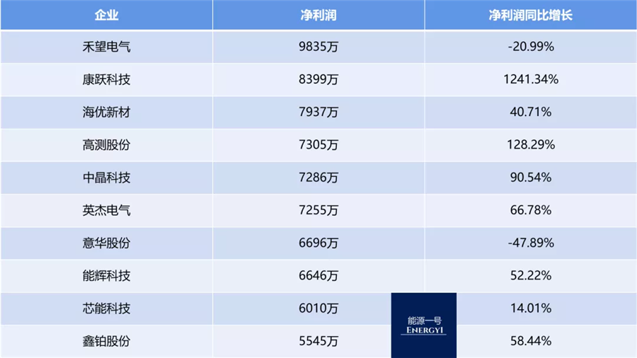 凈利來說,隆基股份、特變電工、通威股份、正泰電器、中環股份等繼續保持凈利高數值。凈利增長較快的為特變、通威、福斯特、上機數控、天合光能、晶盛機電、錦浪科技、固德威、海優新材等。