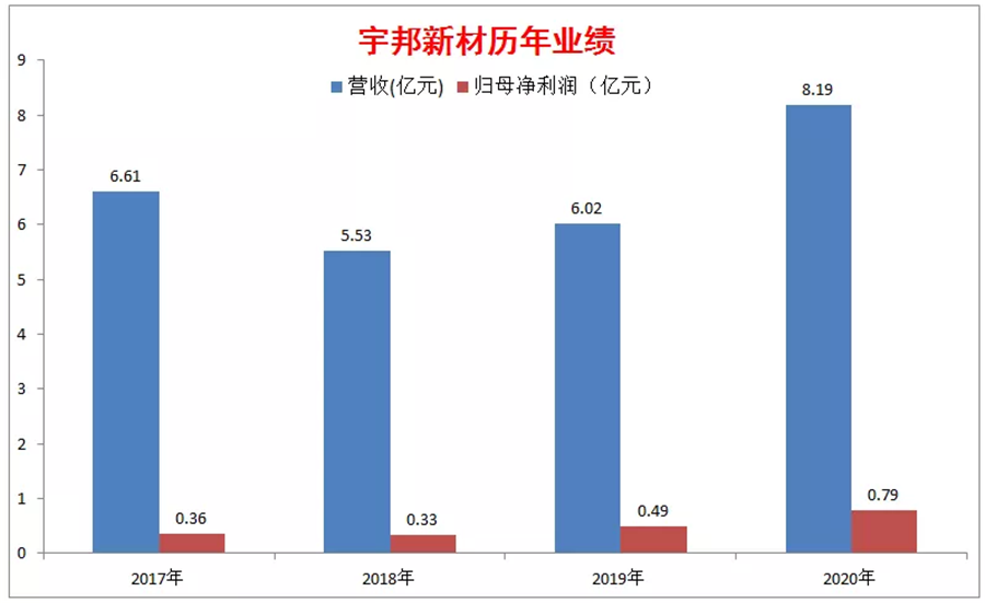2015年,宇邦新材掛牌新三板,證券簡稱為“宇邦新材”,證券代碼為“832681”,轉讓方式為協議轉讓,并于2018年3月6日終止掛牌。