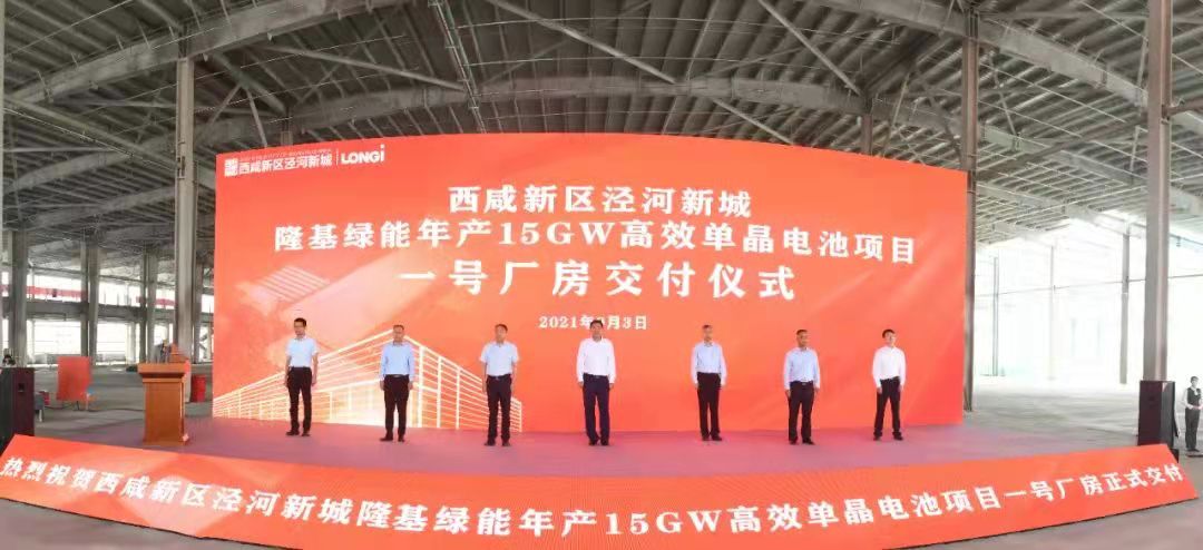 9月3日,西咸新區(qū)涇河新城舉辦隆基綠能年產(chǎn)15GW高效單晶電池項(xiàng)目一號(hào)廠房交付儀式。西咸新區(qū)黨工委委員,涇河新城黨委書(shū)記、管委會(huì)主任張宏偉出席儀式并宣布廠房交付。涇河新城黨委委員、管委會(huì)副主任劉高波主持交付儀式,涇河集團(tuán)黨委書(shū)記、董事長(zhǎng)張鵬飛參加。