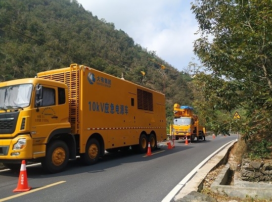 當(dāng)日凌晨4點(diǎn)多,大有淳安分部帶電作業(yè)班和帶電作業(yè)車、發(fā)電車、儲(chǔ)能發(fā)電車一行就向淳安縣瑤山出發(fā),六點(diǎn)準(zhǔn)時(shí)到達(dá)各段保供電臺(tái)區(qū)。到達(dá)后,帶電作業(yè)負(fù)責(zé)人指揮開展帶電掛接10千伏發(fā)電車電纜線工作,工作人員穿戴上絕緣“裝備”——絕緣帽、絕緣披風(fēng)、絕緣手套,“全副武裝”的上絕緣斗里開始工作,有條不紊的掛接電纜線,105號(hào)桿主線開關(guān)斷電,冷導(dǎo)成功。而10千伏的大功率的發(fā)電車像巨無霸機(jī)器人一樣,在M形的山路上工作著,確保鄉(xiāng)鎮(zhèn)村莊60多個(gè)臺(tái)區(qū)正常供電,頗有“一夫當(dāng)關(guān)萬夫莫開”的“雄姿”。現(xiàn)場(chǎng)工作人員值守著發(fā)電車,掛接電纜線,帶電作業(yè)車現(xiàn)場(chǎng)待命,秋老虎也擋不住大家保電的決心。