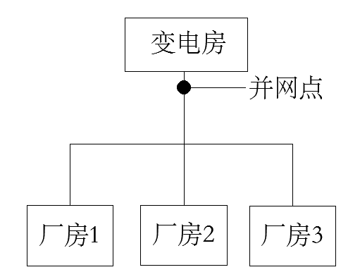 從電能質量的角度上看,用戶完全分辯不出自己用的電到底來自哪里。其實,也沒有必要去區分到底是用哪一種電。如下圖所示,并網點安裝在變電房,并網點安裝雙向電表,電流有兩個方向,可以計量光伏發出來的電,負載用了多少,上網送出多少。但廠房1到3,電流只有一個方向,就不能單獨計量哪一個廠房光伏用了多少電,電網用了多少電。