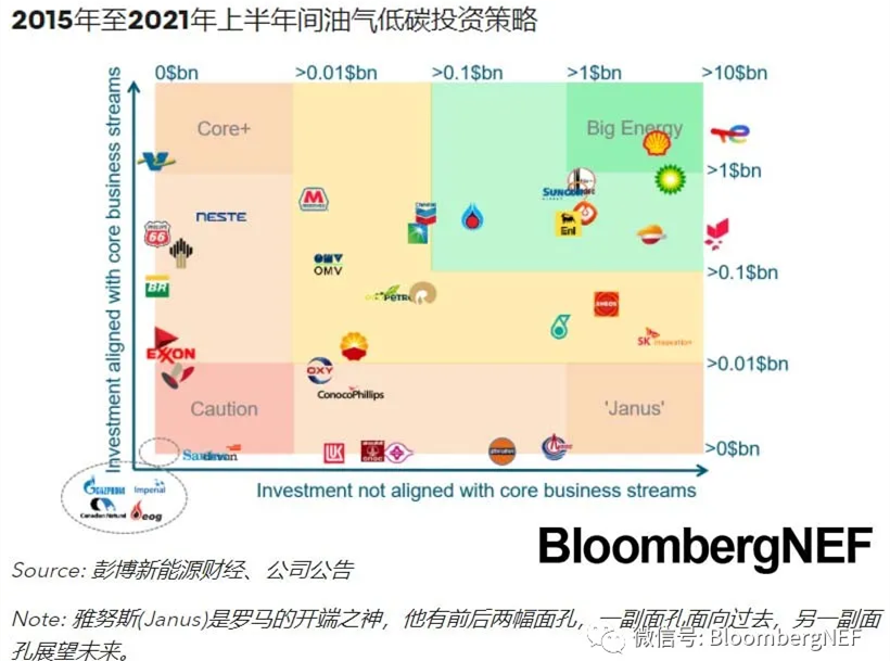 一些公司在2021年上半年加快了對能源轉(zhuǎn)型的投入。道達爾能源、Neste、Galp、BP和Marathon Petroleum的表現(xiàn)超出對手,2021年上半年間低碳投資在整體投資中占比較2015年至2020年整體水平高出20%。