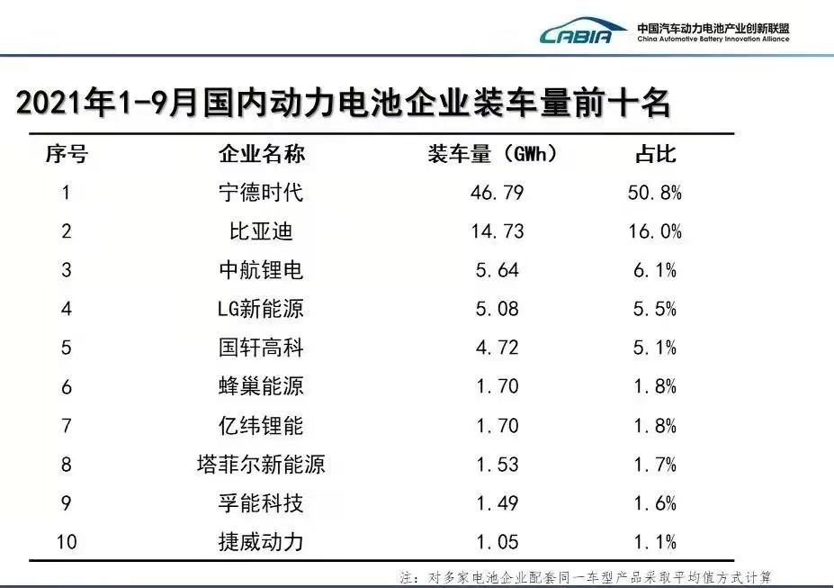 近日,中國汽車動力電池產(chǎn)業(yè)創(chuàng)新聯(lián)盟發(fā)布2021年1-9月動力電池裝機(jī)數(shù)據(jù),頗有看點(diǎn)。