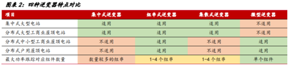 光伏逆變器可分為分為集中式、組串式、集散式和微型逆變器四種。因為單體容量和連接的光伏組件數(shù)量不同,這四種光伏逆變器的應用場景也不相同。