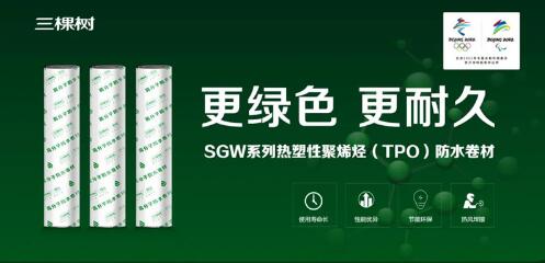 三棵樹防水SGW系列熱塑性聚烯烴(TPO)防水卷材兼具橡膠彈性和塑料加工性的特種聚烯烴樹脂為基料,輔以優質高分子助劑和顏填料,以擠出、延壓等加工工藝制作而成,是輕型節能屋面的理想防水材料。