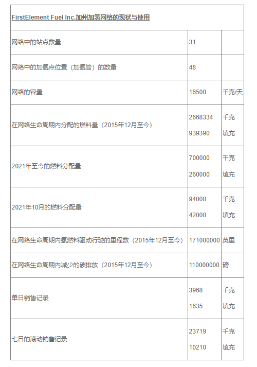 FirstElement Fuel Inc.加州加氫網絡的現狀與使用