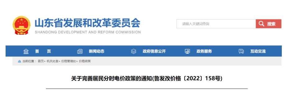 日前山東省發(fā)改委發(fā)布關于完善居民分時電價政策的通知(魯發(fā)改價格〔2022〕158號),通知指出2022年5月1日起執(zhí)行居民家庭分時電價政策。