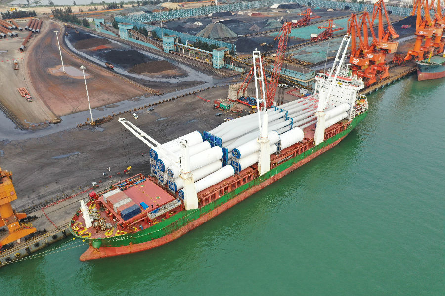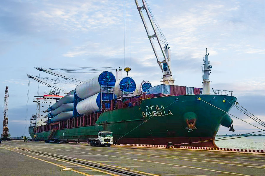 日前,經過79個小時的航海運輸,搭載著6套塔筒的GAMBELLA運輸船舶順利抵達越南隆安港,標志著由中國電建所屬水電四局自主研發設計的海上風電塔筒雙層海運技術成功應用實踐,填補了國內海上5米直徑以上風電塔筒雙層海運技術空白。