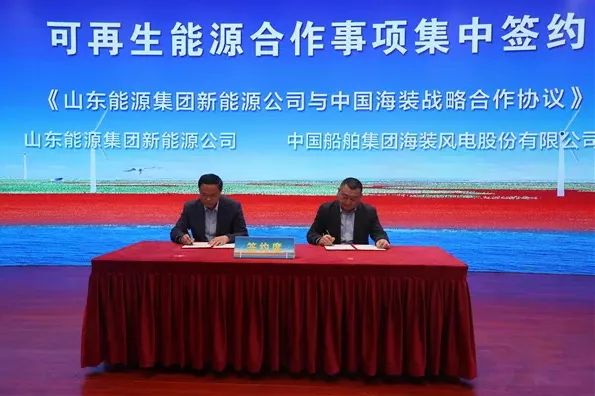 “作為風(fēng)電行業(yè)國家隊,中國海裝將深入貫徹“30·60”戰(zhàn)略部署,以“踐行新發(fā)展理念,支撐新能源戰(zhàn)略”為使命,充分依托中船集團海工裝備研發(fā)制造優(yōu)勢,堅定不移實施“創(chuàng)新引領(lǐng),海陸并舉、向海圖強”的發(fā)展戰(zhàn)略,充分發(fā)揮行業(yè)引領(lǐng)作用。”中國海裝副總經(jīng)理(主持工作)溫劍波在致辭中表示。在隨后的簽約儀式中,溫劍波代表中國海裝分別與東營經(jīng)濟技術(shù)開發(fā)區(qū)黨工委委員、管委會副主任張玉明,山東能源集團新能源有限公司總經(jīng)理李偉簽訂了合作協(xié)議。