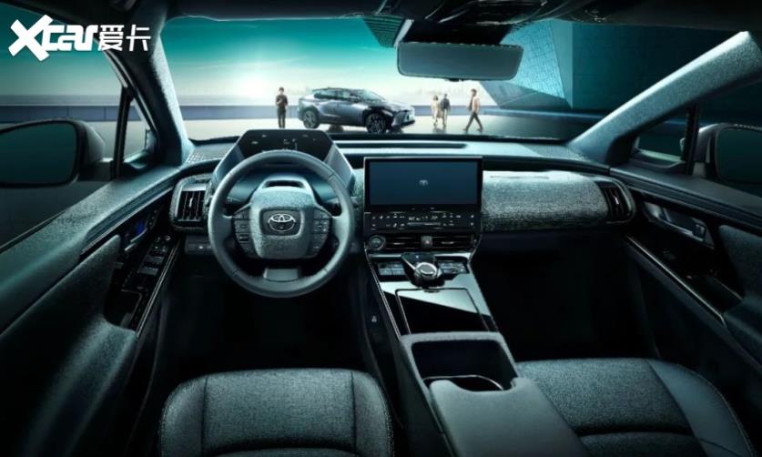 豐田bZ4X的內飾布局頗具層次感,基本延續了概念車傳達的那種科技范兒,儀表屏的設計很大膽,有一個向前傾斜的12度低俯角,但卻讓它的功能介于儀表屏與HUD之間,駕駛者在查看時速時可以盡量少的轉移視線,必須要為這個化繁為簡的設計點贊。