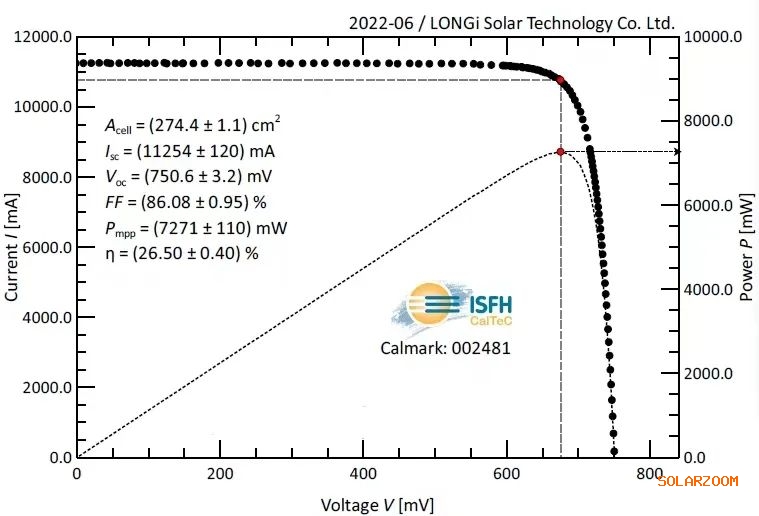 近日,隆基硅異質結光伏電池(HJT)研發再次取得重大突破,經德國哈梅林太陽能研究所(ISFH)測試M6全尺寸電池(274.4c㎡)光電轉換效率達26.50%,創造了大尺寸單結晶硅光伏電池效率新的世界紀錄。