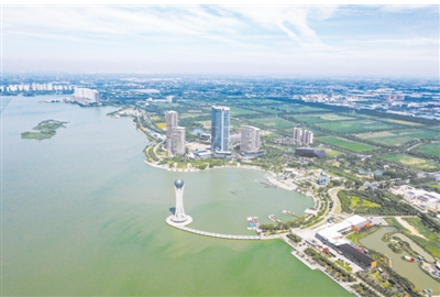 近年來,江蘇省常州市武進區以綠色環保低碳發展為理念,積極推進綠色城區示范區建設,打造城市建設與生態文明相融合的新城區。圖為武進區西太湖(滆湖)攬月灣景區。 新華社記者 楊磊攝