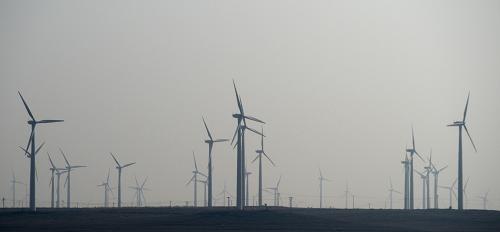 寧夏吳忠市紅寺堡區一處風電場(2月10日攝)。新華社記者王鵬攝