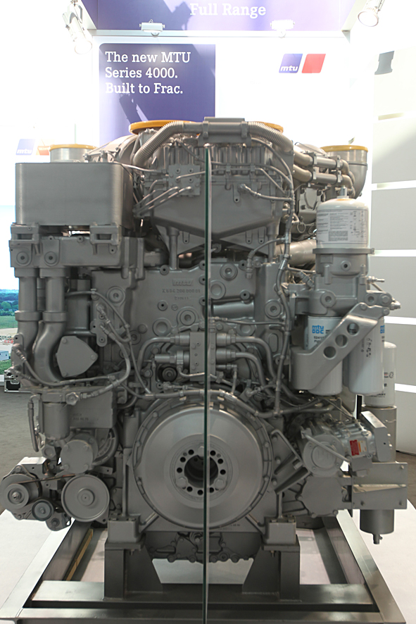 MTU 4000型發動機是我們最受歡迎的產品之一。自1996年以來,該系列發動機累計售出超過26,000臺。MTU4000型發動機在石油天然氣行業主要用于油井開發和增產的水力壓裂設備。使用該系列柴油發動機的壓裂設備可以以4臺到50臺組合完成壓裂蘊含石油和天然氣的巖層。MTU 4000 T4型結合MTU自身具備的柴油科技、通過MTU第五代高壓共軌燃油噴射技術和兩級渦輪增壓器(具有可調高壓段以及廢氣循環系統)、無需增加后處理和相關設置 ,就可以實現超低顆粒和氧化氮的排放。簡單來說,新一代MTU 4000型發動機僅用發動機本身設計性能就可以實現低污染物排放。應用戶市場的要求,上一代MTU 4000型發動機依然會繼續生產銷售。