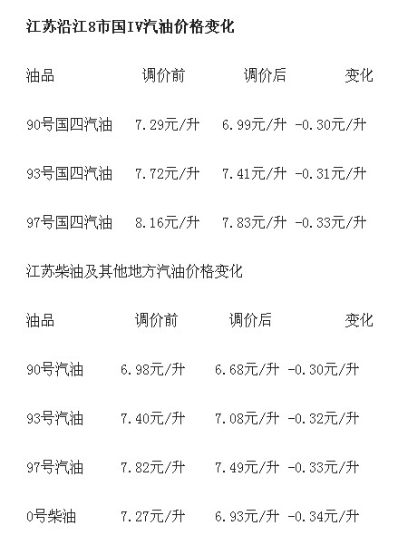 昨天下午5點,國家發改委如約公布新機制后成品油首次調價通知,江蘇省物價局也隨后在網站上公布了該省各地各品種成品油降價后的新最高零售價格。