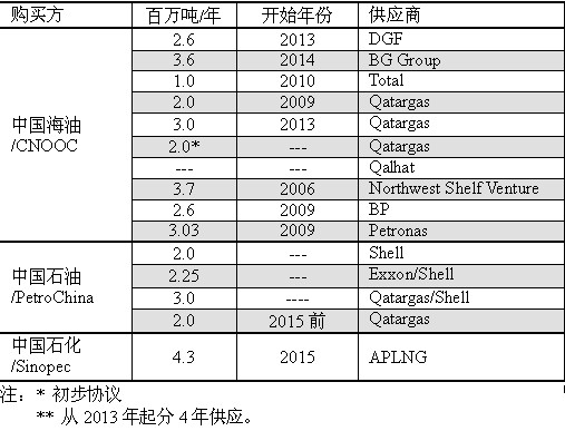 根據“中國日報”報道,近年來中國簽署的LNG進口協議(LNG import deals that China has signed in recent years)如表。