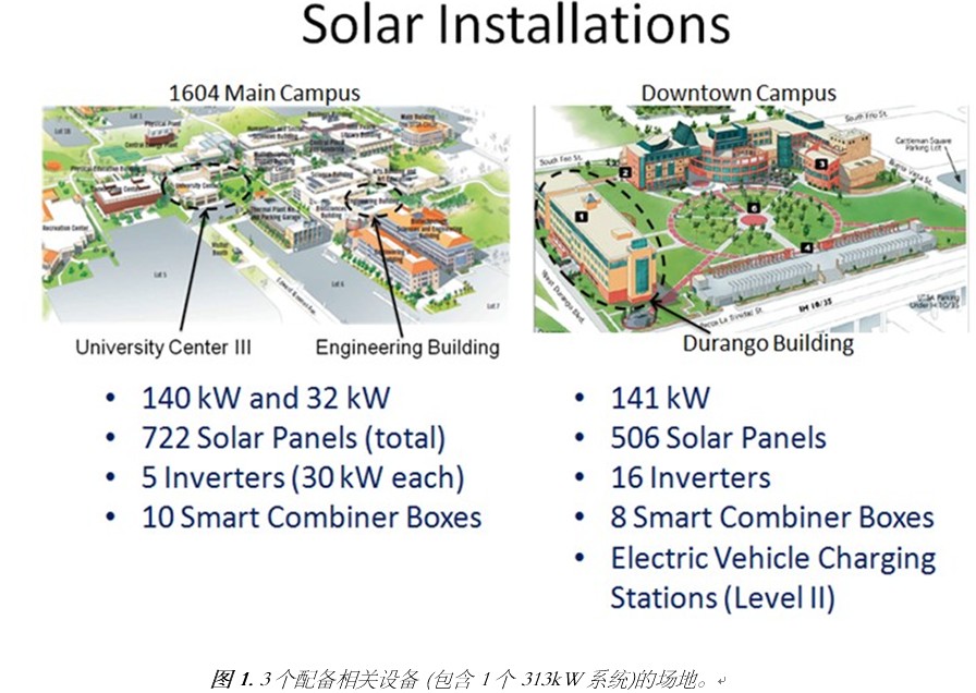 針對(duì)圣安東尼奧德州大學(xué)(UTSA)校園附近多個(gè)地點(diǎn),設(shè)計(jì)出高精度仿真的太陽(yáng)能電場(chǎng)監(jiān)測(cè)系統(tǒng),進(jìn)而以百分之百的穩(wěn)定性高速測(cè)量轉(zhuǎn)換(AC)、結(jié)合器(DC)、輻照、熱電偶與天氣數(shù)據(jù)。