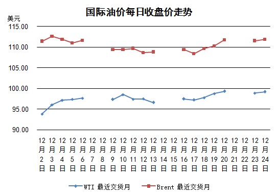 紐約WTI價格和倫敦布倫特價格當日結束前一日的小幅下跌繼續扭頭向上。根據路透社的調查預測,截至20日的美國原油庫存比前一周減少230萬桶,連續4周出現下降。餾分油減少40萬桶,汽油增加130萬桶。25日因圣誕節原因紐約商品交易所將休市。美國能源信息署石油庫存周報也將推遲至27日公布。當日早上公布的11月美國耐久財數據和同月的新建獨棟住宅銷售量都好于市場預期。