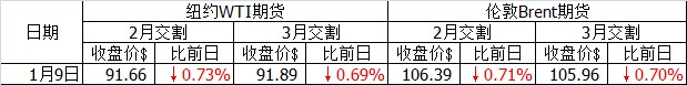 當日美國股市下跌,油價也連帶下跌。前一日美國能源信息署公布的周報顯示汽油和餾分油增量大幅超出市場預計,這一負面消息依然在發揮向下的動能。利比亞西部港口Zawiya最早將于1月10日至12日裝載原油出口。另外,沙特12月份原油產量為981.9萬桶/日,高于11月份的974.5萬桶/日。這都促使油價下行。