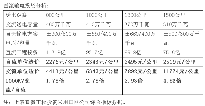(三)直流輸電比1000KV交流輸電在經濟上占絕對優勢