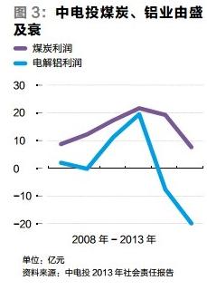 在2010年至2012年,火電連續(xù)巨虧三年,但煤炭和鋁業(yè)板塊撐起了中電投利潤版圖的半壁江山。三年間,煤炭和鋁業(yè)平均年利潤分別為19.42億元和10.22億元,而同期集團(tuán)平均利潤總額為46.8億元。