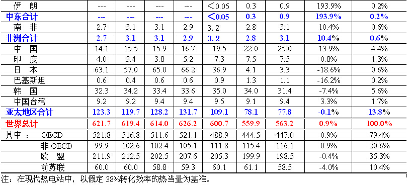從BP公司《Statistical Review of World Energy 2014》的報(bào)告來(lái)看,全球核能消費(fèi)量呈顯逐年降低的勢(shì)頭,而且增長(zhǎng)率最低。