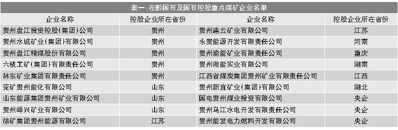 如今,除了盤江煤電、水城礦業、六枝工礦、林東礦業四大省屬國有煤企,貴州的大型煤礦開采主體基本都是省外來客。這從貴州省安監局公布的國有及國有控股重點煤礦企業名單便可見一斑(見表一)。