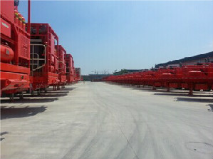 交流結束后,杰瑞市場部工作人員帶領中國能源網一行人員參觀了裝備制造車間,車間外停滿了各種各樣的石油裝備,有的正準備發給客戶。進入車間,所有人員都帶上了安全帽和防護眼鏡,在市場部的講解中一路參觀了壓裂車、混砂車、LNG設備組裝等車間,看到了工人們緊張忙碌的情景。