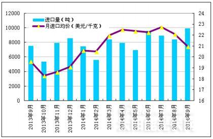 圖3 2013年9月-2013年9月多晶硅進口量及進口均價 示意圖數據來源:海關