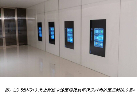 在信息化的年代,高科技已經(jīng)無處不在,為生活增添色彩。在高端商場,單一的廣告海報已不能滿足品牌信息的生動表達,取而代之的是新興的宣傳工具-數(shù)字標(biāo)牌,將科技與時尚完美結(jié)合。作為上海市中心地帶商場高端的代表—上海連卡佛商場,是上海繁華黃金商業(yè)地段的大型高端購物廣場,眾多國際高端奢侈品牌云集于此。此次,LG為上海連卡佛商場提供了4臺84WS70MS和15臺55WS10商用顯示器,更加及時、生動地傳遞時尚訊息,顧客可更加直觀地感受到高端品牌的奢華精美,也在第一時間掌握了時尚新品、折扣等信息,不僅大大提升了消費者的購物體驗,還增強了商場的時尚氣息。