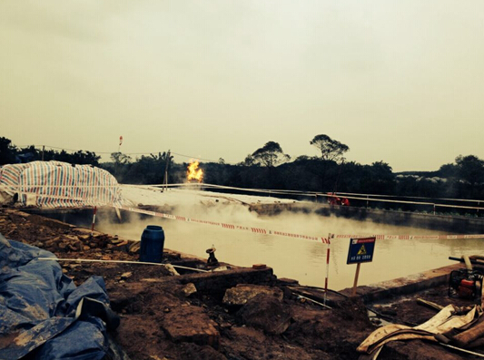 2014年11月29日,中石化在四川省自貢市榮縣留佳鎮瓦滓村二組成功開采出頁巖氣。該井名叫金頁1HF井,于12月11日舉行了點火儀式。