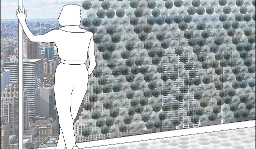 這款遮光墻面,熱量來源是陽光照射。當(dāng)陽光強(qiáng)烈,熱量使得鎳鈦合金線改變形狀,元件上的織物折疊,阻止光照進(jìn)入玻璃墻內(nèi)部。等到日落或者是多云天氣,鎳鈦合金線就恢復(fù)到原先的形狀,讓織物延展,遮光墻表面變透明。