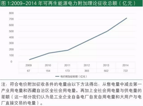 中國支持以風電和太陽能發電為代表的可再生能源快速發展的主要補貼資金來自可再生能源發展基金,包括國家財政年度安排的專項資金和依法征收的可再生能源電價附加(之后簡稱“電價附加”)。