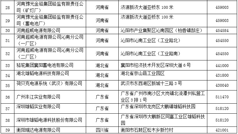 符合《鉛蓄電池行業規范條件(2015年本)》企業名單(第一批)