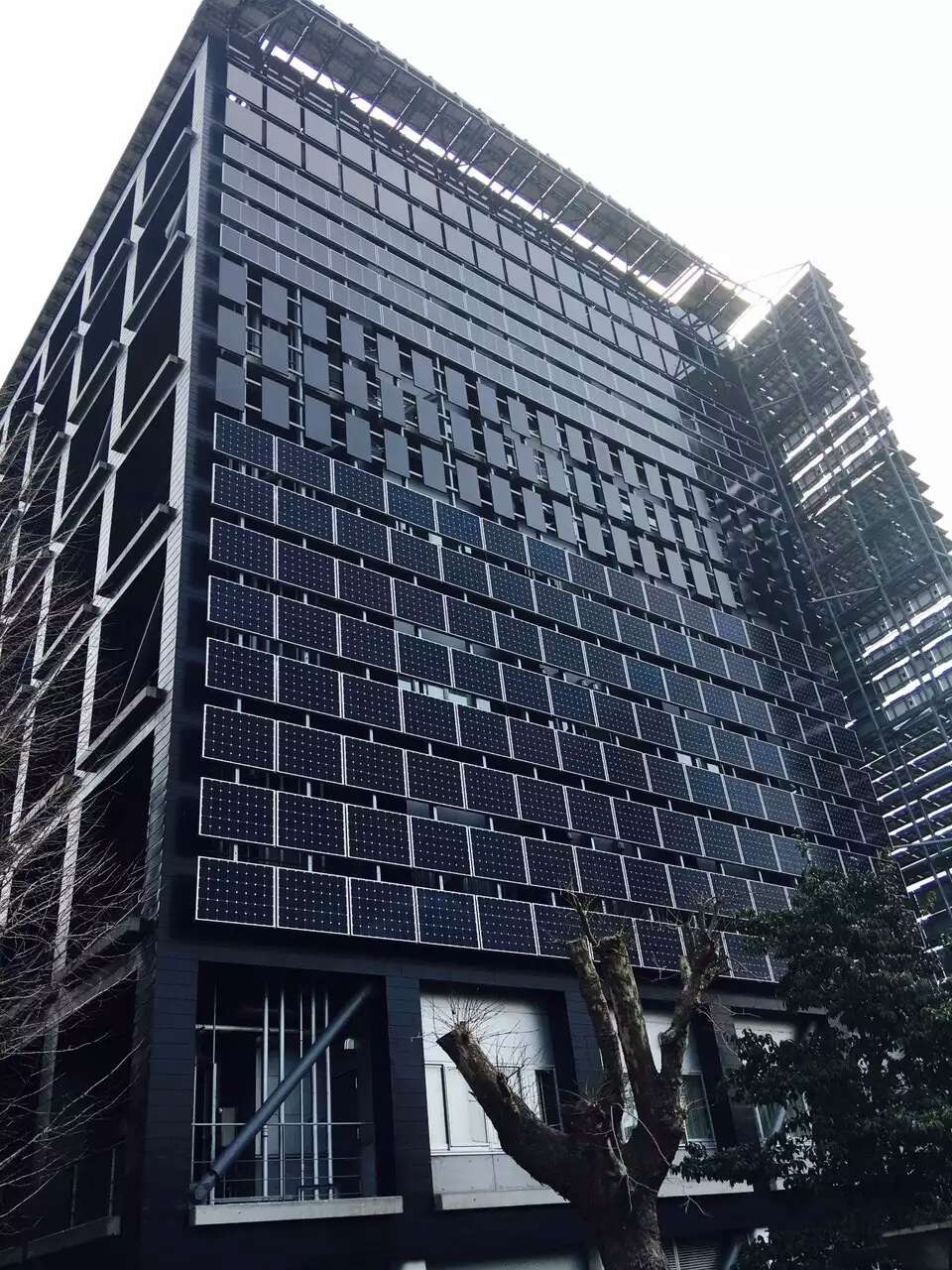 從應用端來說,在日本,你可以很容易就看到單晶光伏電池板出現在各個場合,建筑屋頂、溫室大棚、水面光伏……在政府支持下,日本的分布式光伏這兩年得到極大的發展,單晶電池板的集約、美觀、發電更多等優勢在此意義重大,因而發展迅猛。事實上,日本使用單晶產品的地方真的很多。下圖是東京工業大學混合式光伏建筑,該項目是建于東京工業大學大岡山校區的一座研究設施,地下兩層、地上7層。設計中采用了650kW的太陽能發電及100kW的燃料電池以達到電力自給自足的目的。整座建筑物除了北側以外,其它幾面的外墻都覆蓋了太陽能發電板,電池板也選擇了單晶電池板,以爭取獲得最大發電量。抬眼看,一排排整齊的單晶電池板非常引人注目!