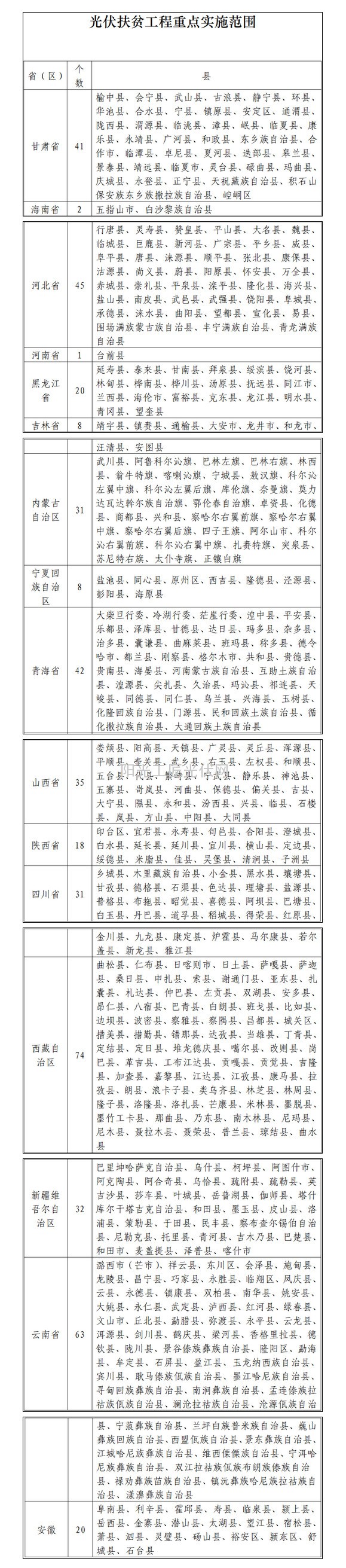 意見指出,光伏扶貧工程的工作目標是在2020年之前,重點在前期開展試點的、光照條件較好的16個省的471個縣的約3.5萬個建檔立卡貧困村,以整村推進的方式,保障200萬建檔立卡無勞動能力貧困戶(包括殘疾人)每年每戶增加收入3000元以上。其他光照條件好的貧困地區(qū)可按照精準扶貧的要求,因地制宜推進實施。