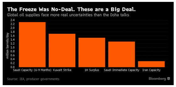 花旗商品部門研究負責人Ed Morse就表示,170萬桶的減產數字著實不少,相比之下,就算多哈凍產會議達成一致,也帶不來160萬桶的產量下降。
