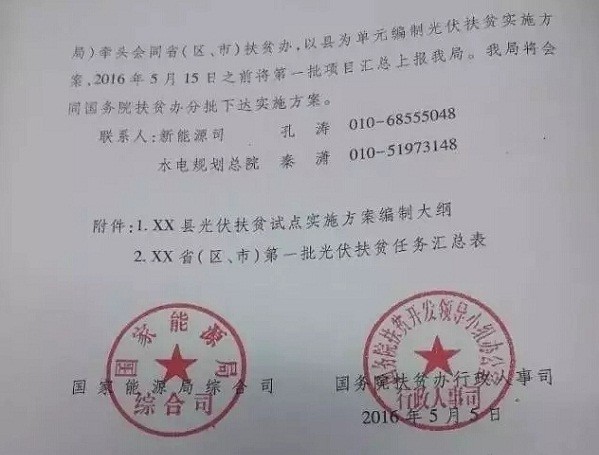 繼國家能源局4月底組織部分省區(qū)、電網(wǎng)公司、銀行和企業(yè)召開光伏扶貧推進(jìn)會后,光伏扶貧試點實施方案編制大綱正式由國家能源局和國務(wù)院扶貧辦聯(lián)合印發(fā)。本批次項目申報材料的提交時間為5月15日。