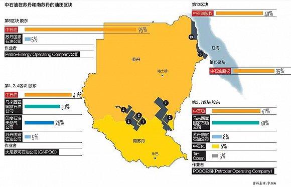其中,中石油占股40%,馬來西亞國家石油公司占30%,印度石油天然氣公司占25%,蘇丹國家石油公司占5%。參股者還共同修建連接油田和北部港口的原油長輸管道。