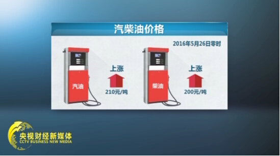 央視財經記者從國家發改委獲悉,5月26日0點將上調國內汽柴油限價,汽油每噸上調210元、柴油每噸上調200元。
