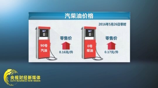 全國平均來看折合90號汽油每升上漲0.16元,0號柴油每升上漲0.17元,92號汽油每升上漲0.16元,95號汽油每升上漲0.17元。