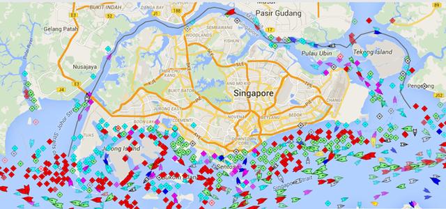 新加坡海域密密麻麻的油輪,其中大部分都處于靜止?fàn)顟B(tài)