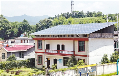 6月14日,在連城縣四堡鄉田茶村村部大樓上,一塊塊巨大的太陽能光伏板,不停地吸收著太陽的光能,默默地轉化輸出電能,大樓墻壁上的電表箱里,一個個跳動的數字,實時記錄著這個小型光伏電站的發電量。