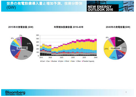 調查公司彭博新能源財經(BNEF)6月13日發布了能源相關長期預測的2016年度版2016年新能源前景(New Energy Outlook 2016)。