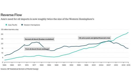 (亞太原油進口幾乎達到西半球的兩倍)