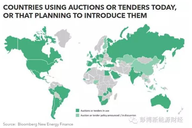 根據彭博新能源財經的《新能源展望》,2040年前,目前已經引入競拍或投標機制的國家每年將迎來25%到35%的新增清潔能源電力容量(小規模光伏機組除外);