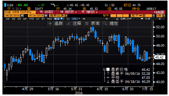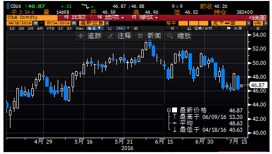 周四(7月14日)國(guó)際油價(jià)小幅反彈,扳回上日大幅下挫的部分失地,美原油8月期貨目前交投于45.39美元/桶附近,布倫特原油9月期貨目前交投于46.79美元/桶,日內(nèi)反彈較多因素還是因?yàn)榧夹g(shù)面的修正需求,但漲幅料受限,因兩家主要機(jī)構(gòu)發(fā)布看法悲觀的報(bào)告后,全球石油過剩問題短期內(nèi)不會(huì)解決的疑慮益發(fā)升高。