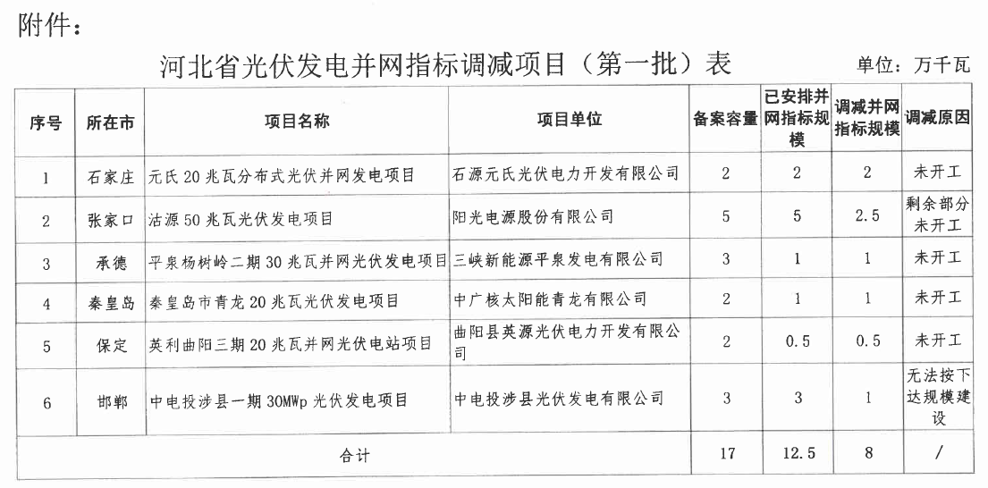 附件:河北省光伏發(fā)電并網(wǎng)指標(biāo)調(diào)減項(xiàng)目(第一批)表