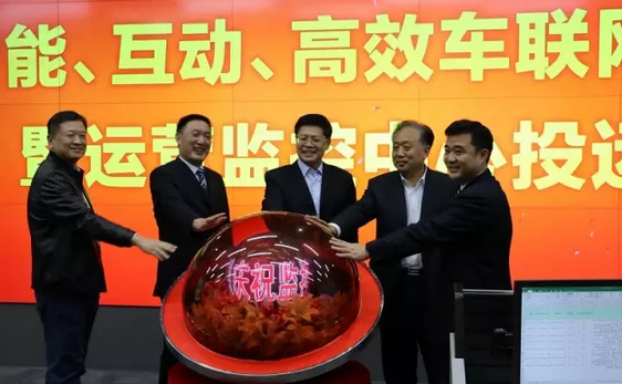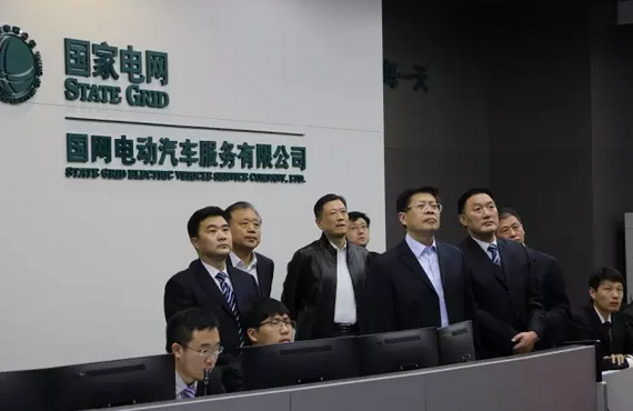 國家電網公司副總經理韓君、副總工程師蘇勝新,國網電動汽車服務公司總經理彭建國、黨組書記李寶森,國家電網公司營銷部副主任沈建新為車聯網3.0系統暨運營監控中心投運揭幕