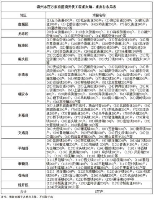 溫州市百萬家庭屋頂光伏工程重點鎮(zhèn)、重點村分布圖